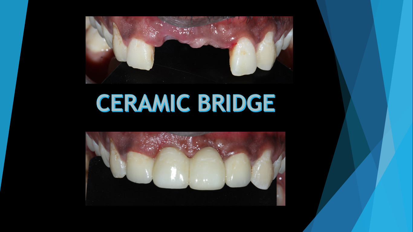 - Bridges are cemented to natural teeth taking support from them or to implants surrounding the empty space.