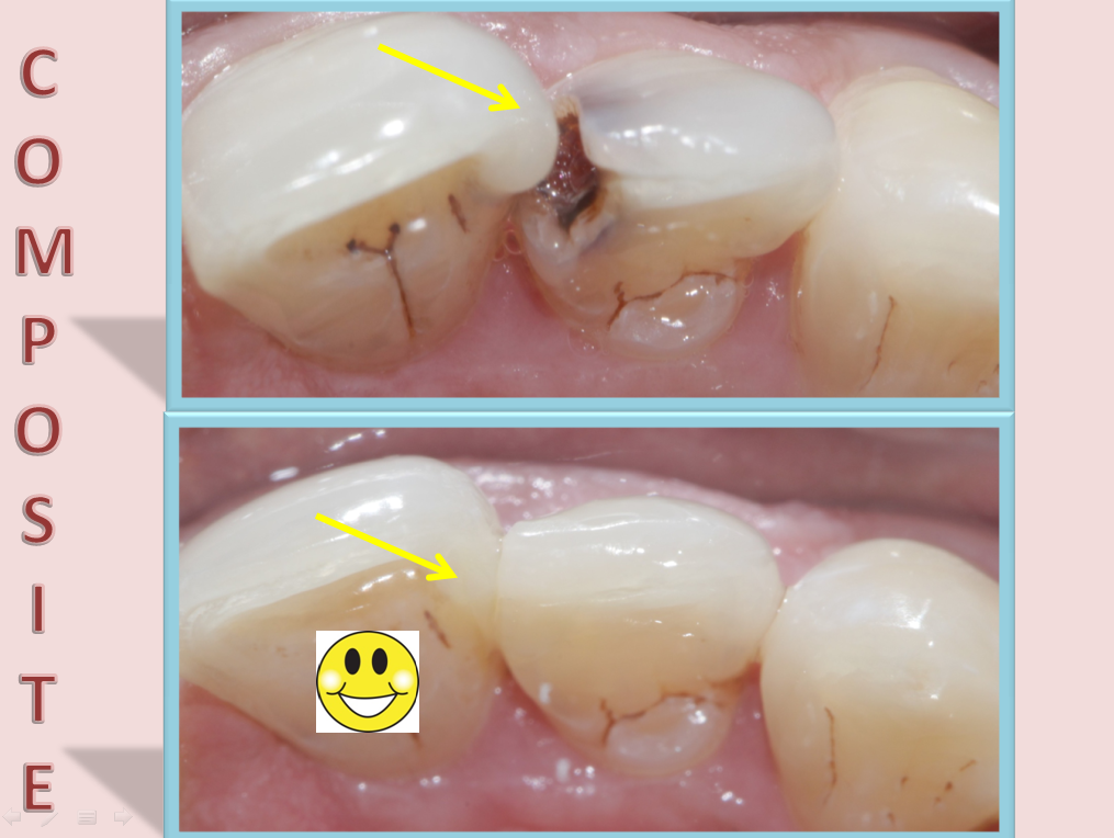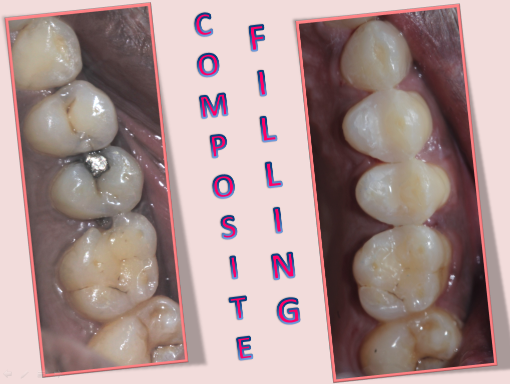 - Silver Amalgam: Silver colored metallic filling material was used before for restoring the cavities. But now a days, they have been replaced with composites. The metallic filling expands and contracts while taking hot and cold foods. This causes microleakage between the filling and the tooth area, through which secondary decay can occur. In due course, this might lead to infection of pulp. And also they are not esthetic.