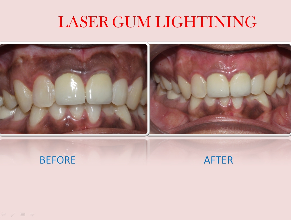- Gum lightening : Pigmented dark coloured gums can be lightened significantly.